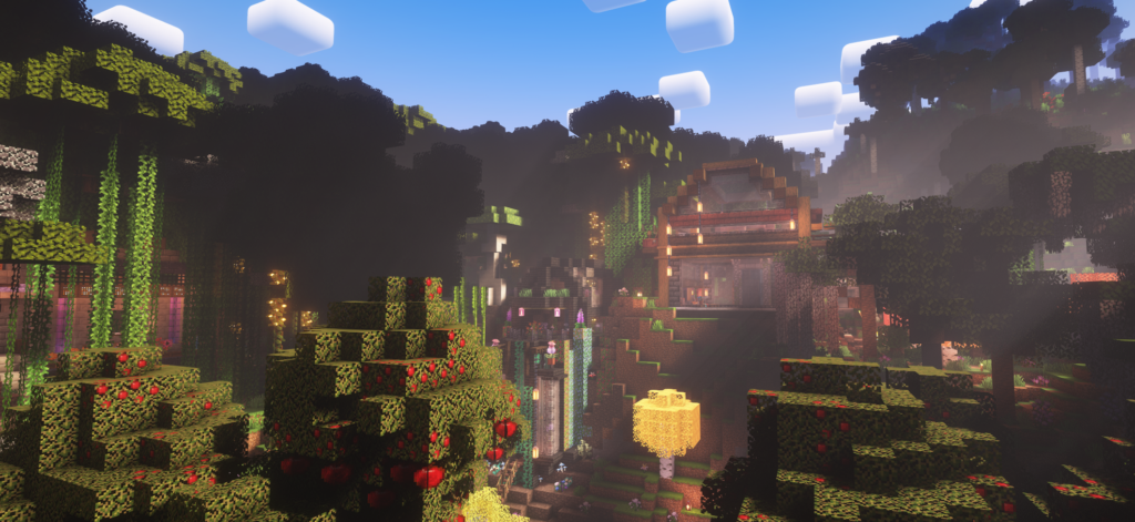 What is your history with Minecraft? Did you grow up playing it? Are you running it on a MacBook that sounds like it’s about to take flight? A desktop computer built to run heavy games with shaders turned up high? The hardware shapes the space as much as the players and the blocks do. Frame rates affect how easy it is to play, shaders change the mood and the aesthetic profile, and sounds impact how immersed a player feels. Sensory details like the music that plays, the crackle of the furnace, or the way footsteps sound different depending on the blocks you walk on makes a space feel real around a player. They feel within a space. This is a condition of the game without the player having to place a single block. The context of the player changes the way they interpret the game through these sensory functions, and ultimately impacts how they engage in the space.