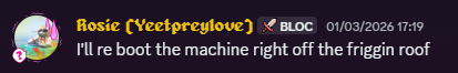 If I want to play on the server then I want to be at home, using the desktop PC. My laptop is sufficient for simply playing the game but that’s never all that I do. At home, on my second monitor, I have the server console (AMP, the portal through which the Minecraft instance that everyone connects to is managed), I have the SunBlock Status site, I have OBS (screen recording software), I have Discord, VS Code, as well as a dozen reddit threads and githubs and wikis. It’s almost physically uncomfortable to work with the single application that my laptop limits me to. At home I have my clackity mechanical keyboard and my serious Gamer Mouse with extra buttons that I have diligently hot-keyed. For me, software work must be done from home. The Computer comes to me.